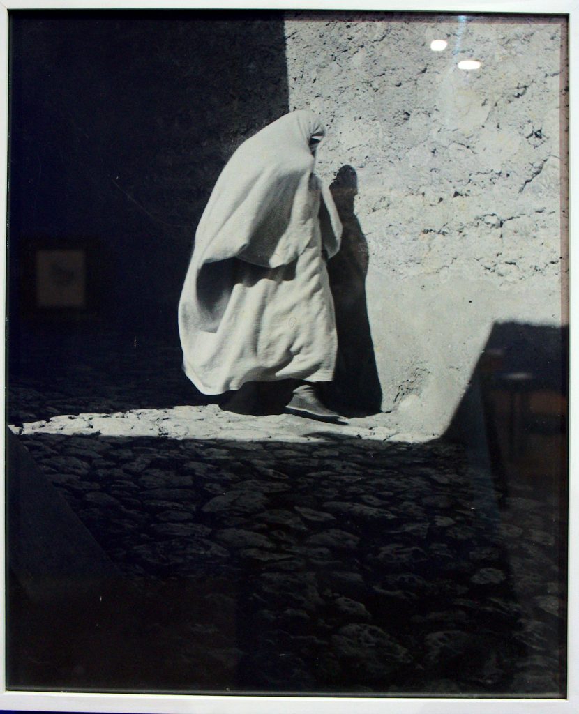 Einsame Frau und Schattenspiele, ein Bild eines marokkanischen Fotografen aus dem MACMA, dem Musée d’art et de culture Marrakech. Und die gleiche Frage auch hier: Woher kommt sie? Wohin geht sie? Was macht sie dort?